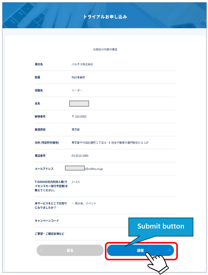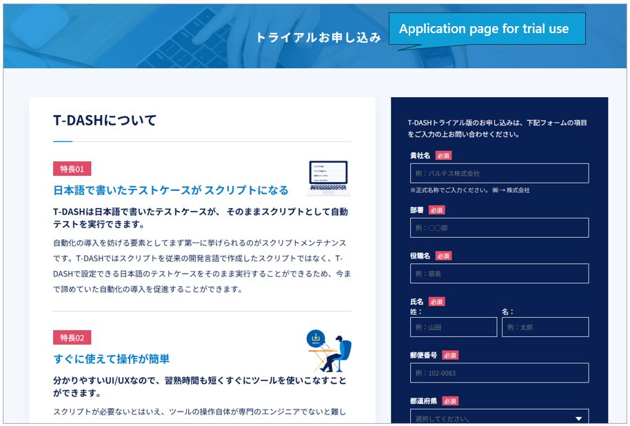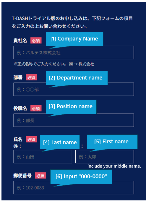 1-2. Enter the required information on the trial application page.