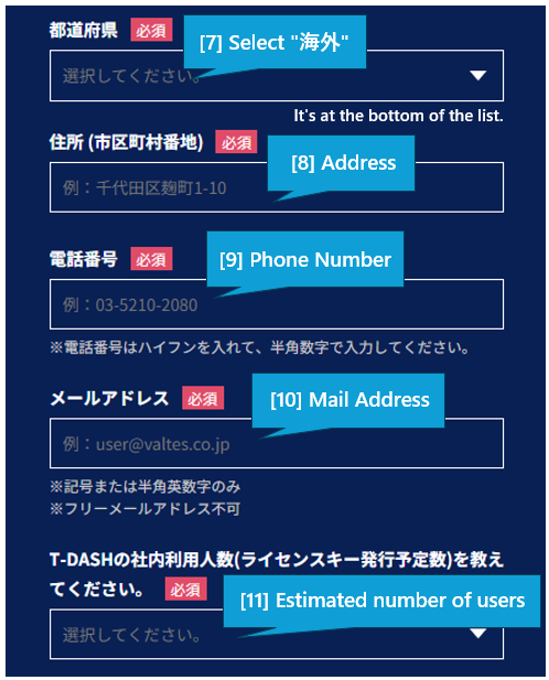 (2/3) Input “海外”, Address, Phone Number, Mail Address, Questionnaire