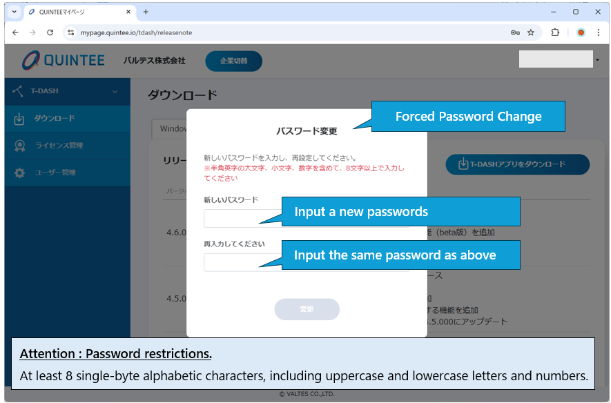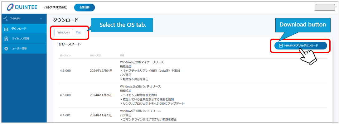 2-2. Download the installer for the OS of the PC on which T-DASH will be used from QINTEE My Page.