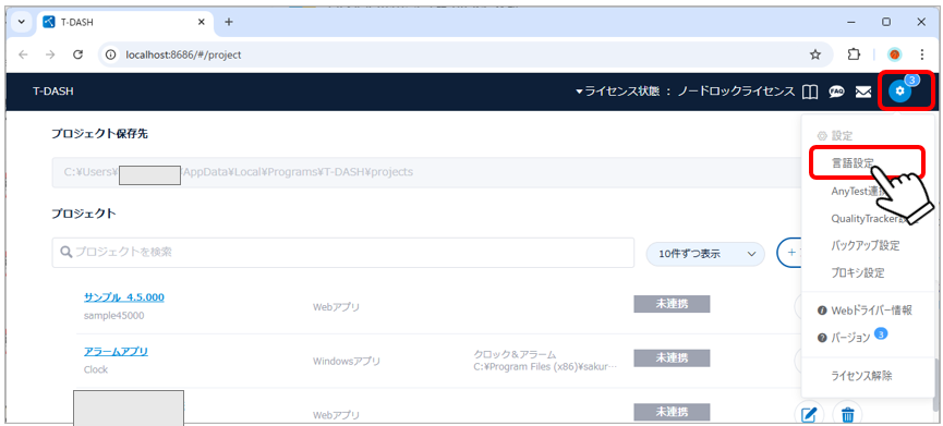 T-DASH allows you to switch the display language between Japanese and English.