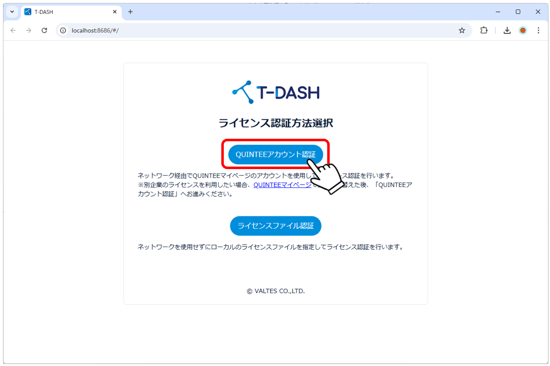 3-2. Display the T-DASH authentication method selection screen in your default web browser.