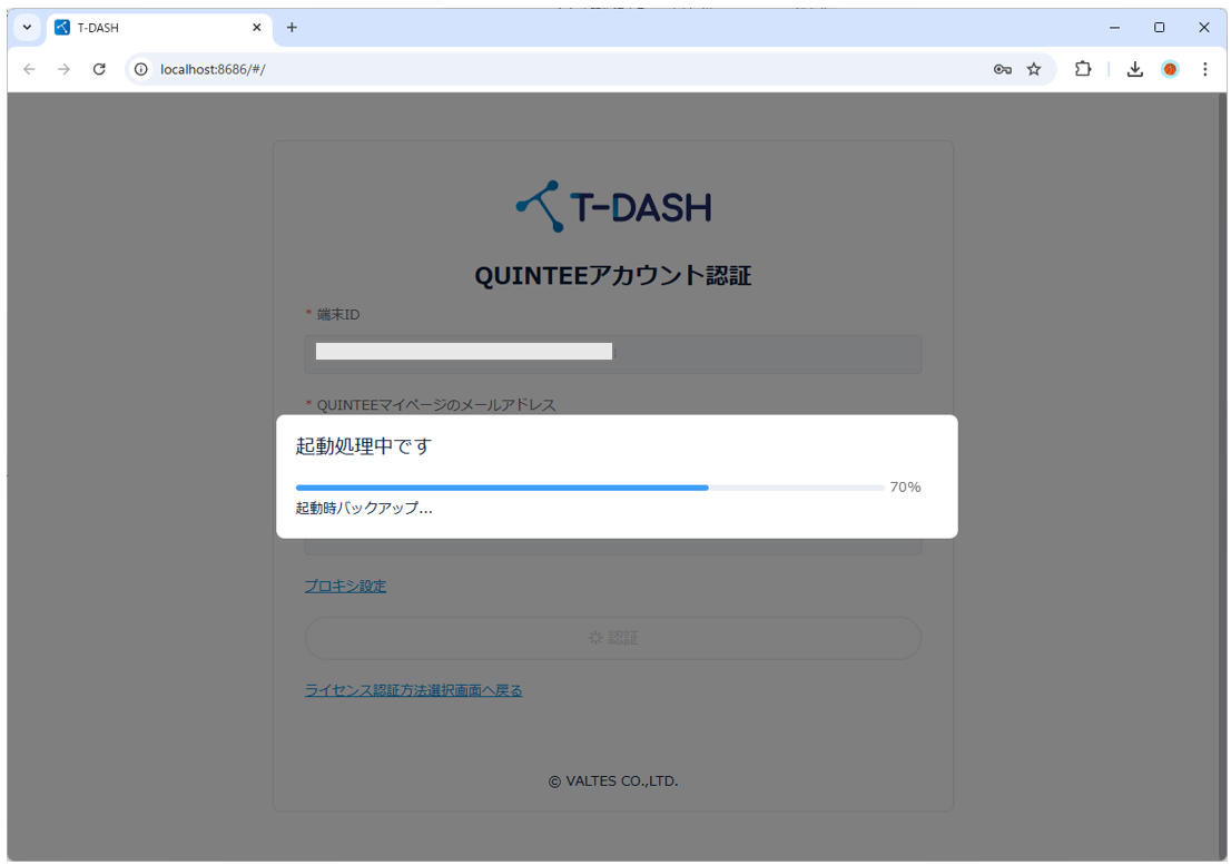 3-4. The startup processing modal is displayed.