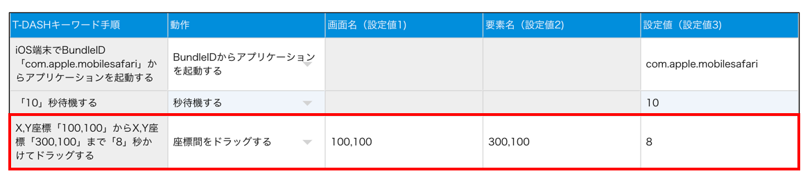 (※)X座標、Y座標の絶対値指定 - 画面外の座標(マイナス値や端末の最大値を超える値)を指定する場合は、開始位置が画面内の座標である必要があります。