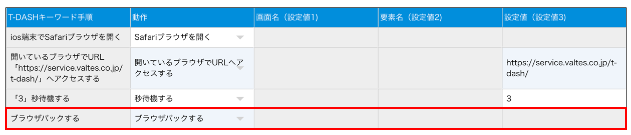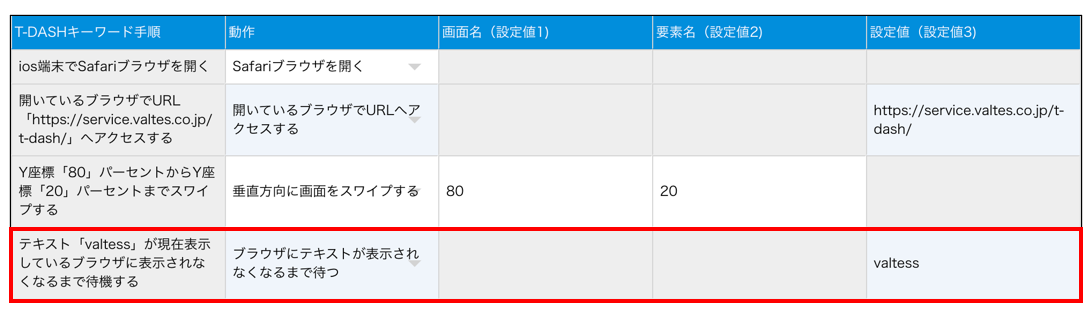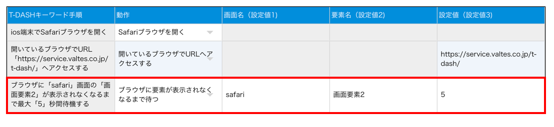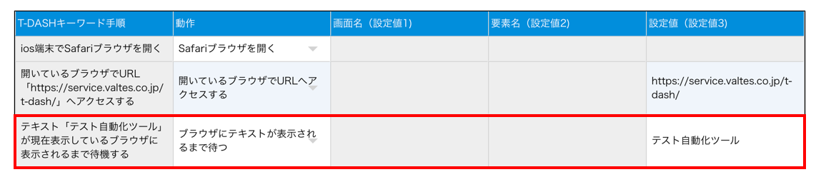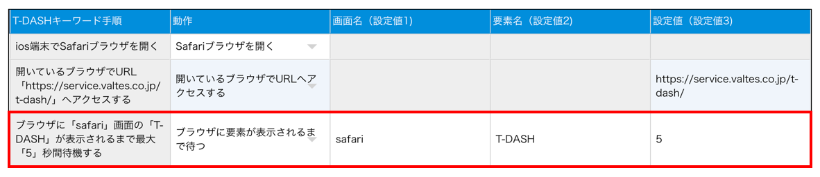 - 必須条件:「Safariブラウザを開く」のアクションがテスト手順に含まれていない場合は、動作しません。