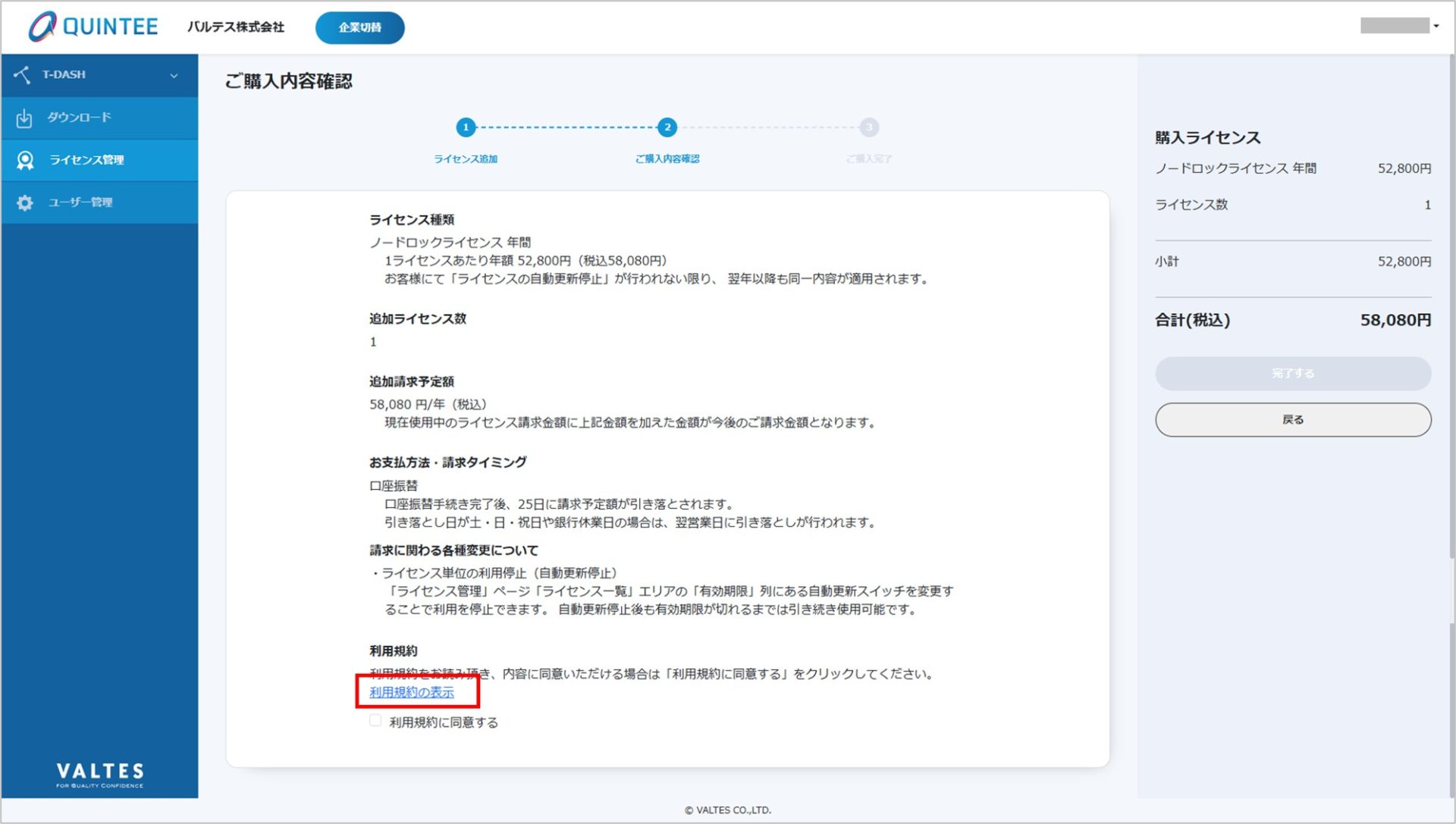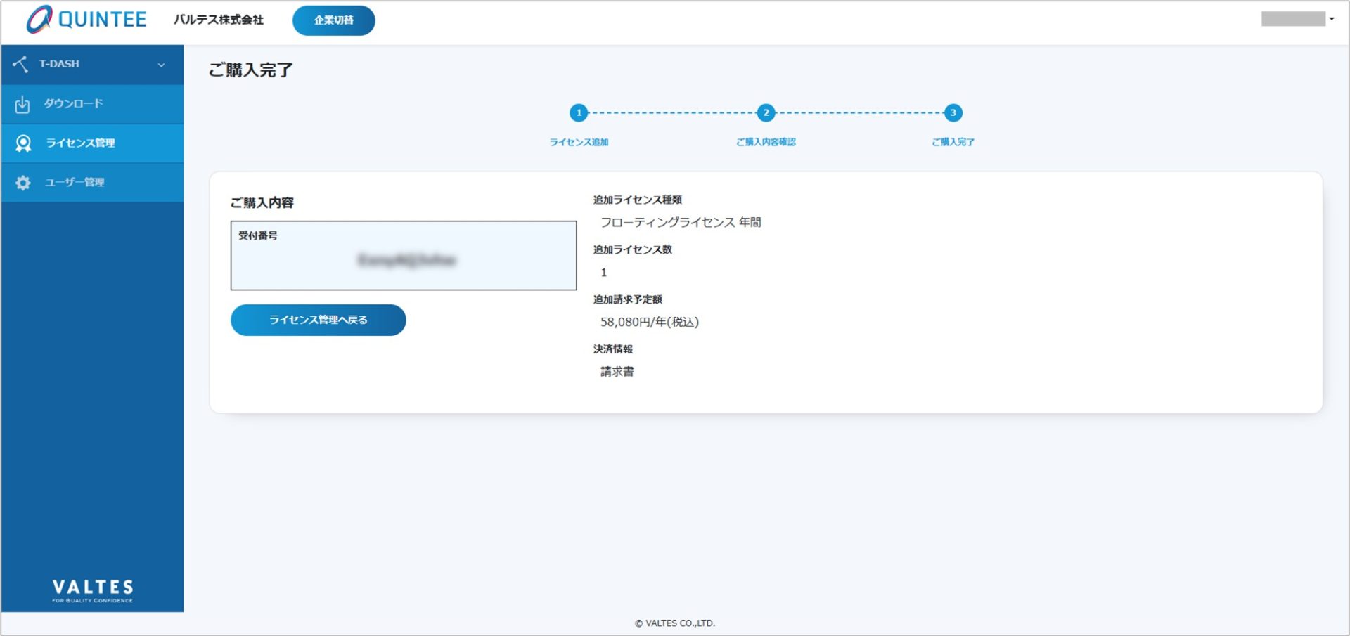※ 購入完了後、ライセンス一覧画面にて発行されたライセンスが確認/利用できます。