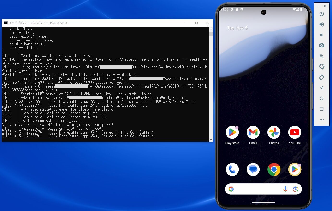 ※エミュレーター名に空白が含まれている場合は、空白を「_(アンダーバー)」に置き換えて使用してください。