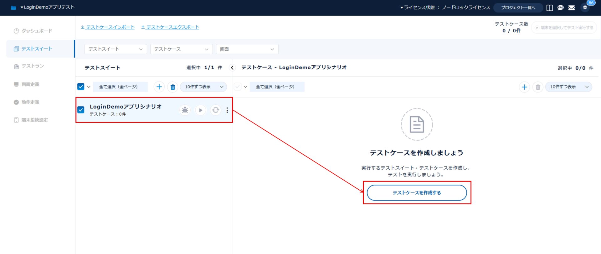 5.3. 作成したテストスイート名をクリックし、「テストケースを作成する」ボタンをクリックする。