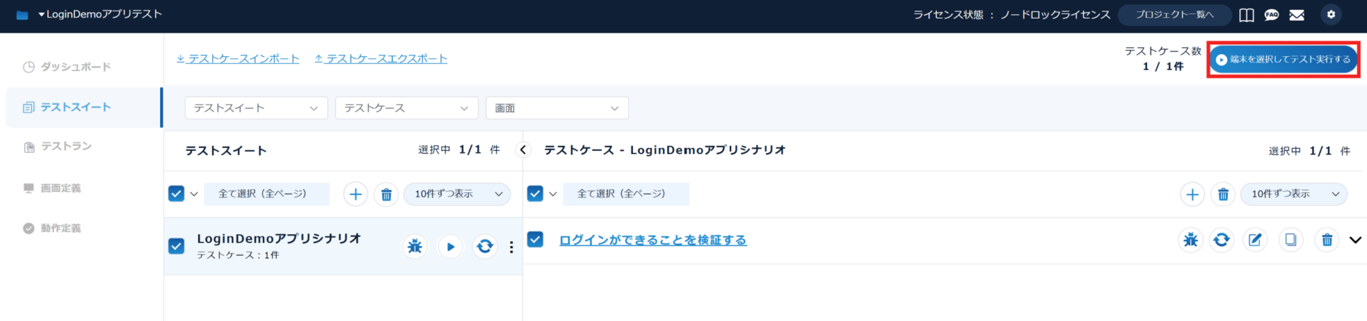 7.2. 「端末を選択してテスト実行する」ボタンをクリックする。