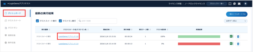 8.1.自動テストの実行が完了すると、テストレポートが自動で作成されます。テストレポートは、実行完了後の画面とダッシュボードの2画面より確認できます。