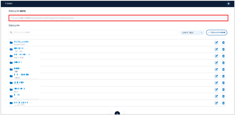 T-DASHのプロジェクトは、ユーザーのPCに保存されます。