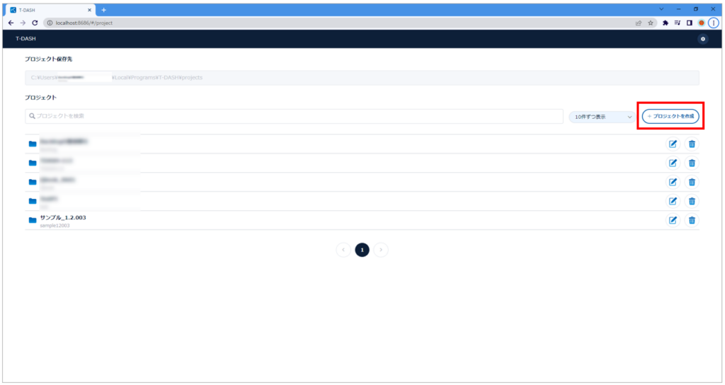プロジェクト一覧画面は、T-DASHにログイン後に表示される画面です。