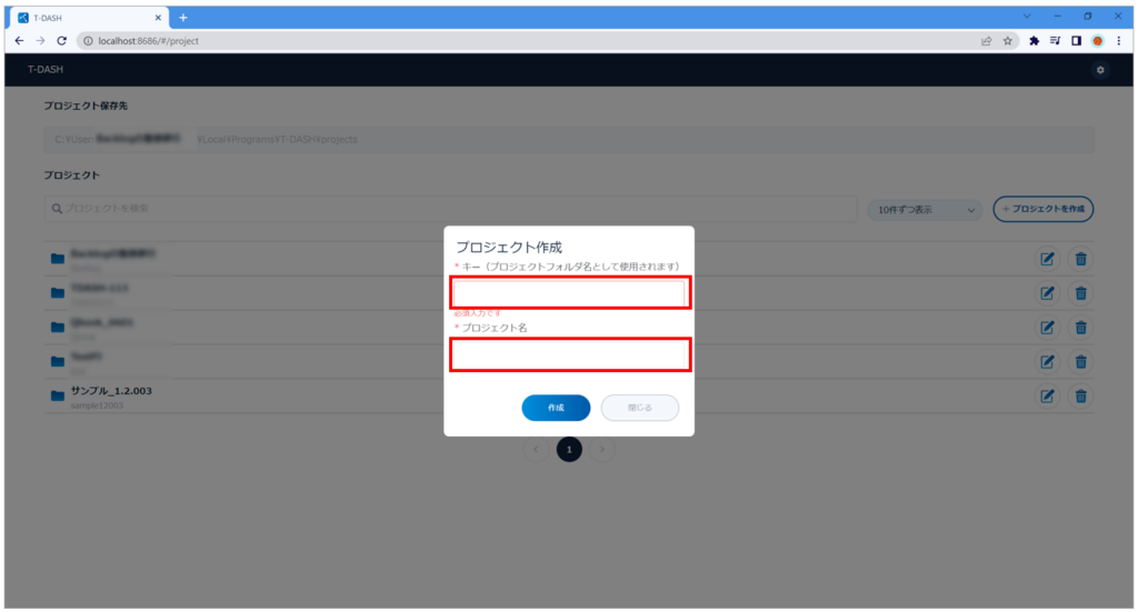 ※ プロジェクトキー (保存先フォルダ名) は、変更することができません。