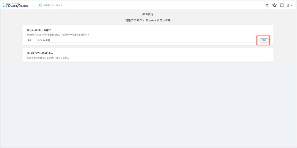 QTにログインし、「プロダクトの設定」→「API設定」の順にクリックします。