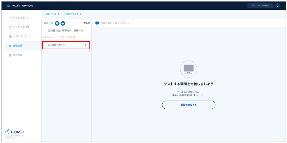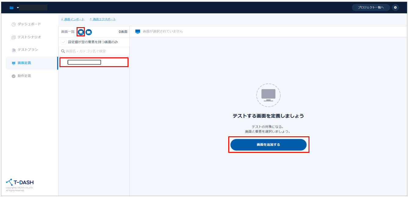 T-DASHでは、自然言語(日本語/英語)を使用したテスト自動化を実現するために、「テスト対象ページ」の「画面定義」を作成する必要があります。