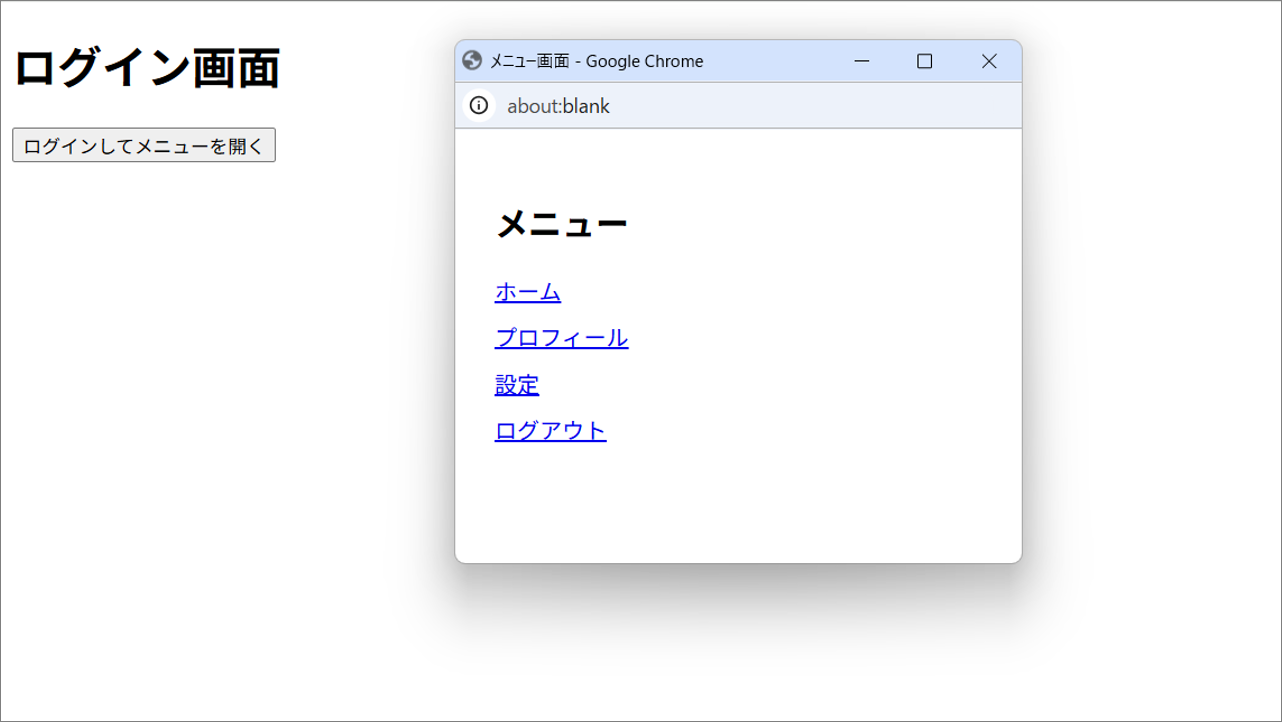 以下のように別ウィンドウで表示されている要素を取得します。