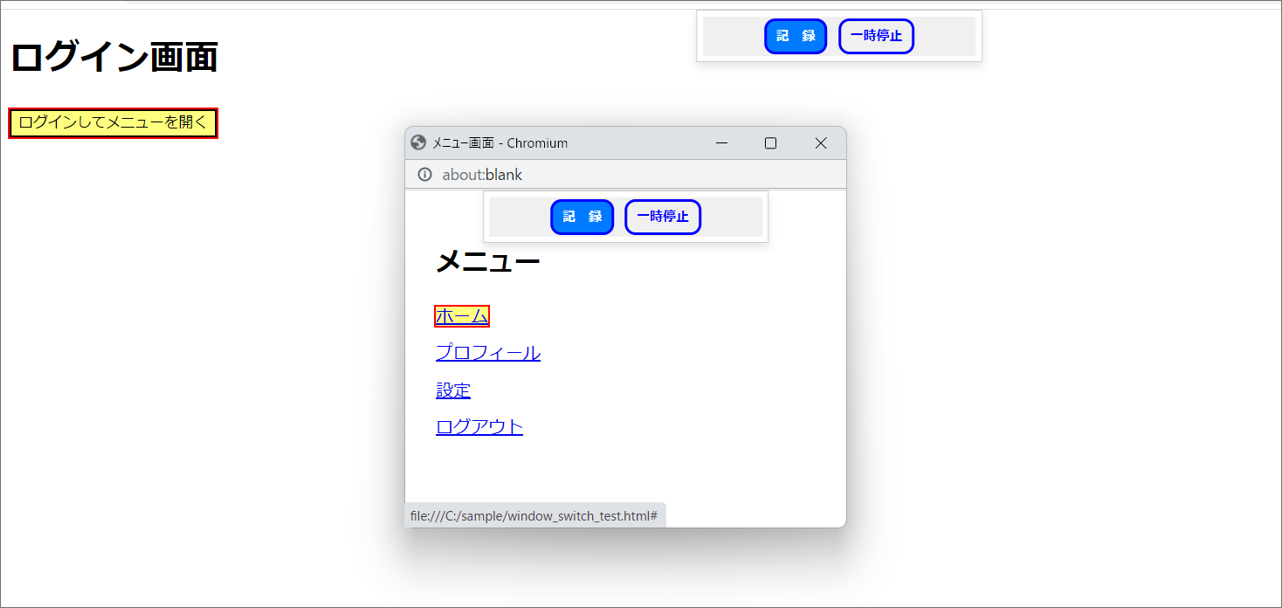 別ウィンドウで表示された要素も、そのまま操作することで、手順の記録が可能です。