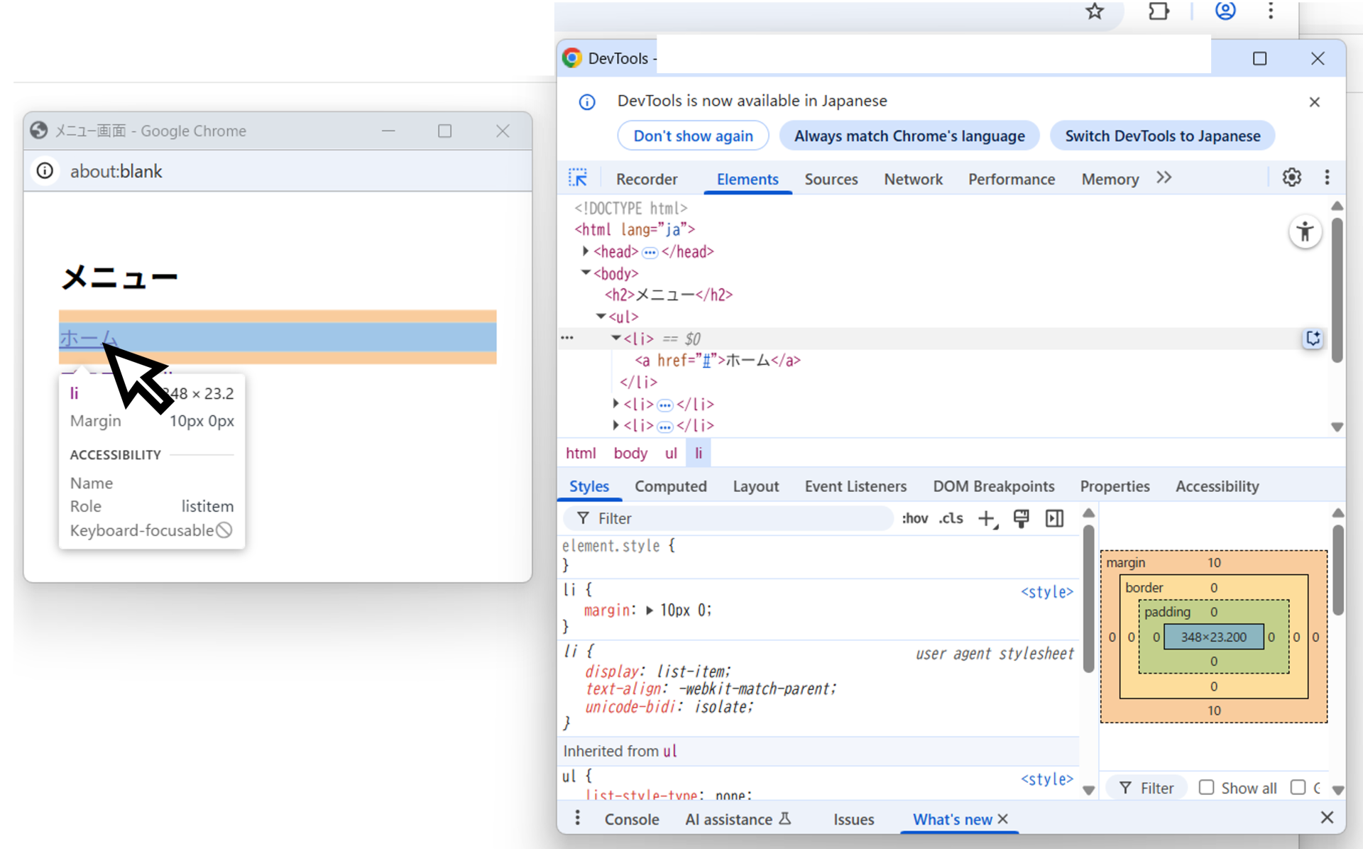 画像ではGoogle Chromeのデベロッパーツールを使用しています。
