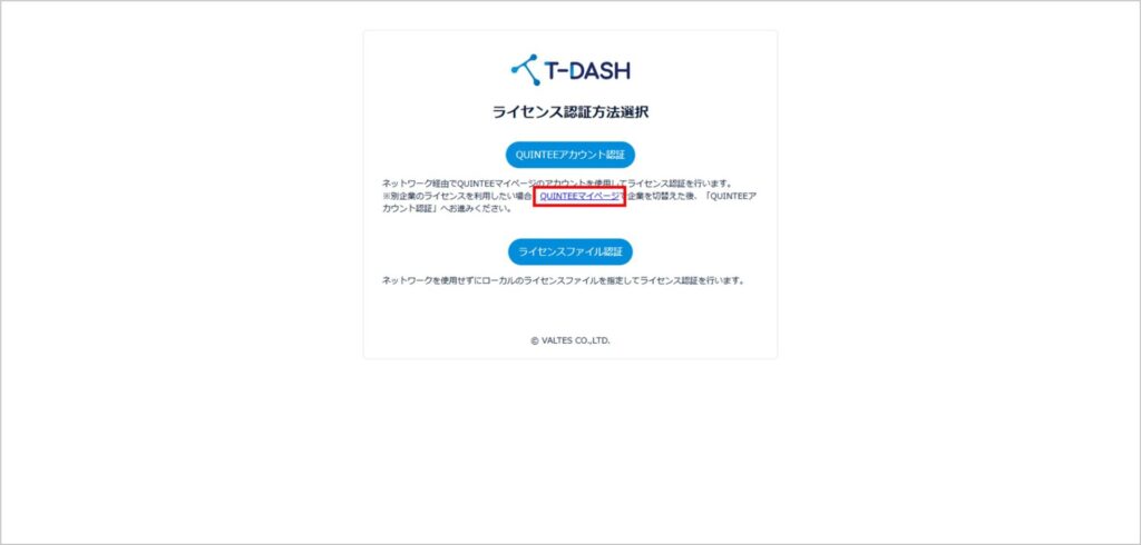 T-DASHはライセンスが紐づいた企業で起動します。
