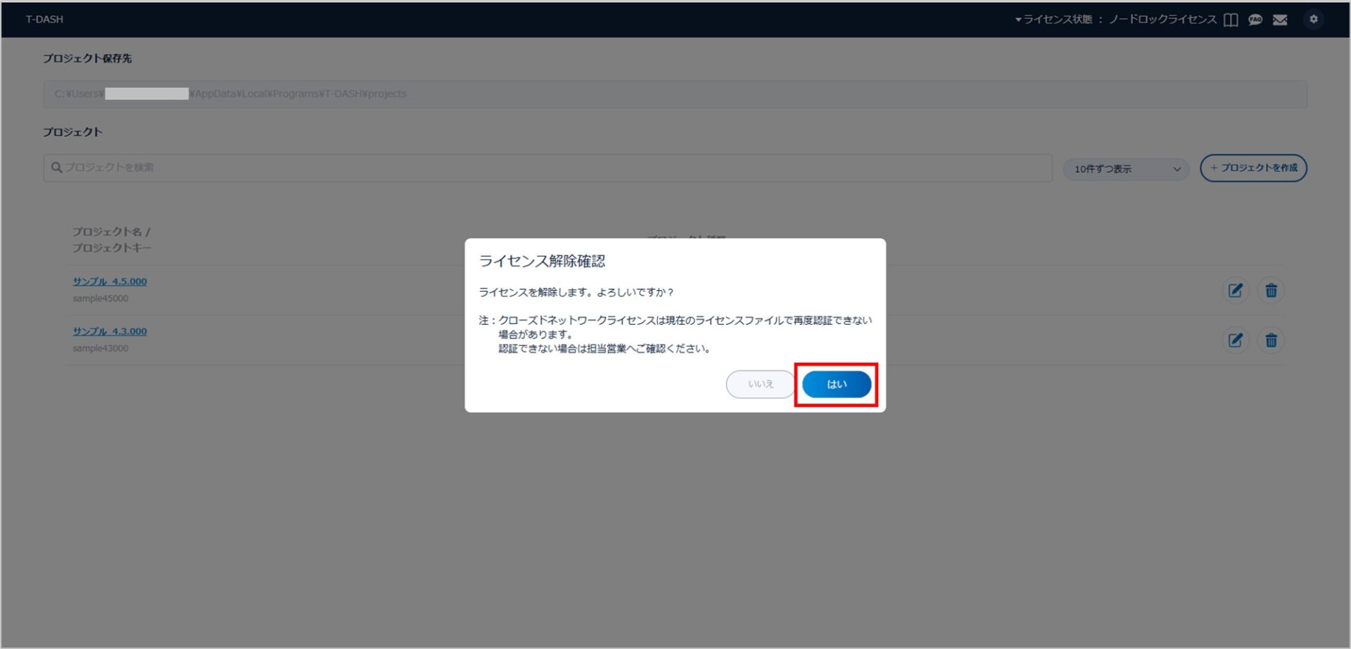 3.モーダルを確認し、「ライセンスを解除する」をクリックします。