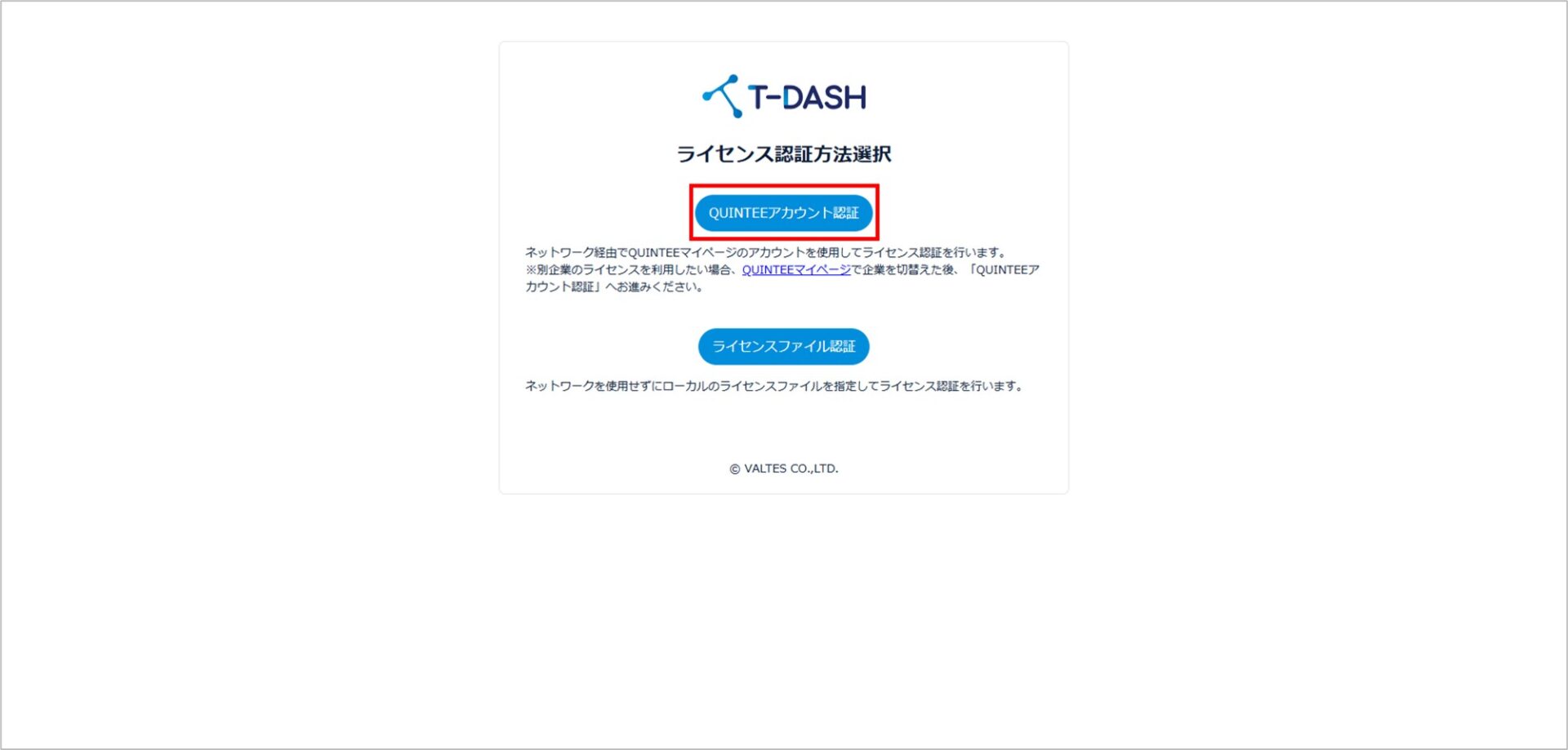 T-DASHはライセンスが紐づいた企業で起動します。