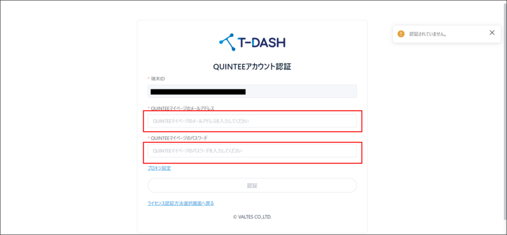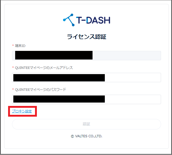 T-DASHのインストールが完了しT-DASHを起動すると、ライセンス認証画面が表示されます。