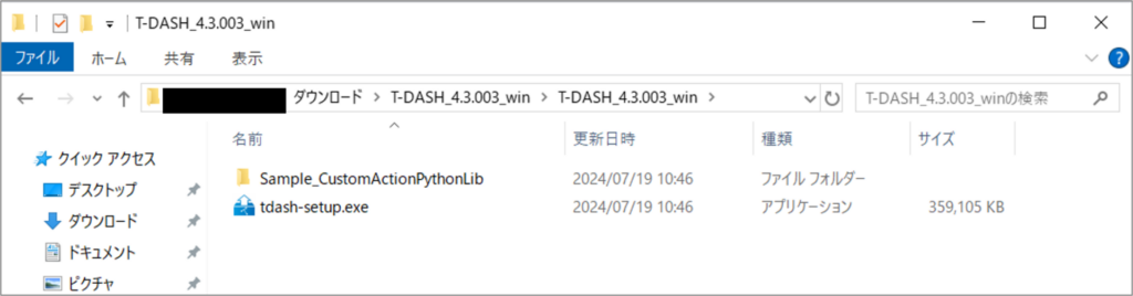 ダウンロードしたzipファイルを解凍後、t-dash-setup.exeを起動してインストールしてください。