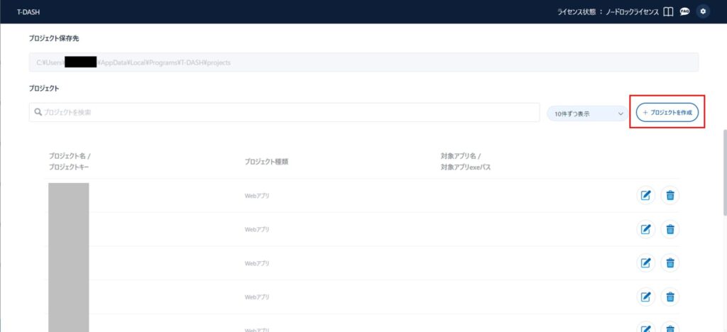 プロジェクトとは、T-DASHを使用する上で一番大きな箱になるものです。
