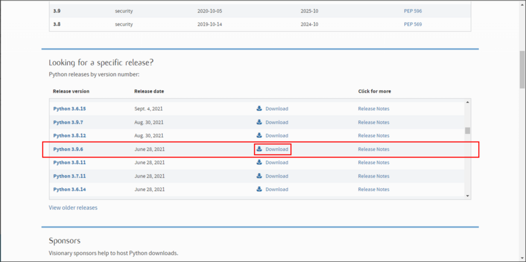以下のPythonURLにアクセスします、バージョン3.8以上のPythonをインストールお願いします。