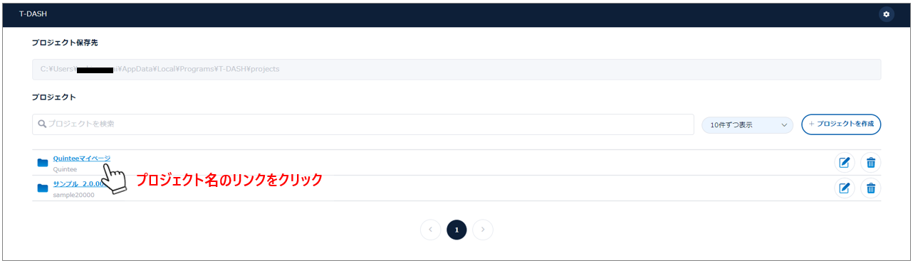 1.3. 新しく作成されたプロジェクト名のリンクをクリックする