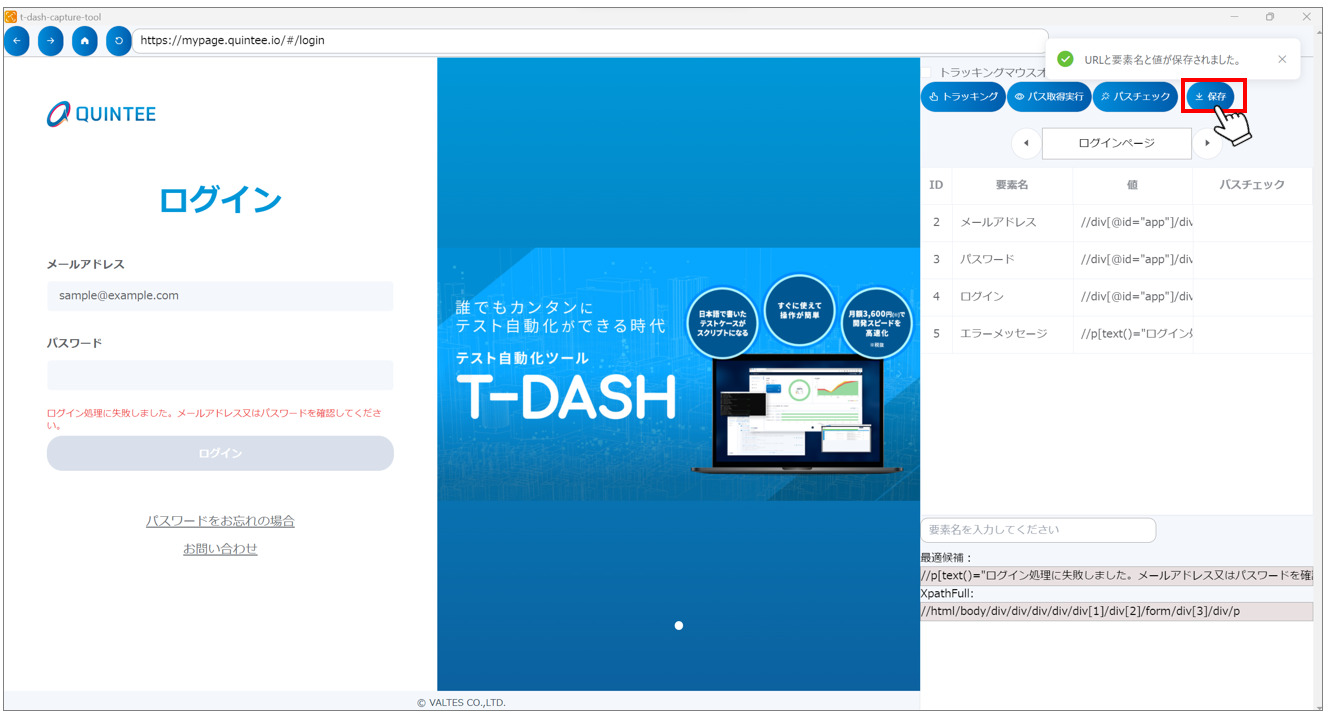 3.8. 「保存」ボタンをクリックすると、T-DASHにも取得した値が保存される