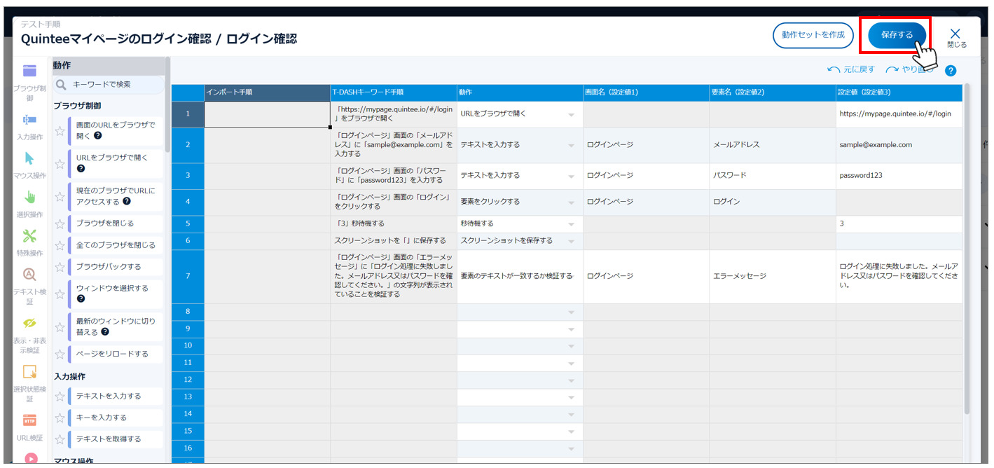2.7. すべてのテスト手順が入力できたら、「保存する」ボタンをクリックする