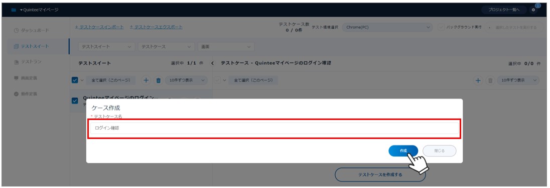 2.4. 任意のテストケース名を入力し、作成ボタンをクリックする