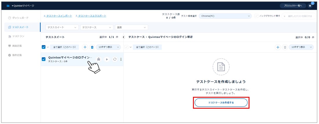 2.3. 作成したテストスイート名をクリックし、「テストケースを作成する」ボタンをクリックする