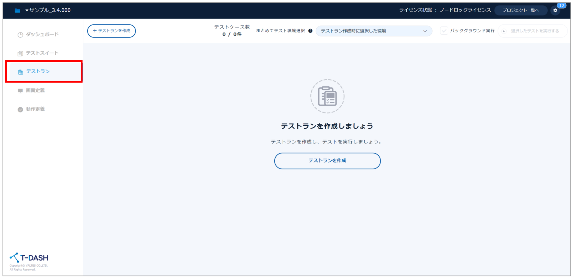 2. 左上の「+テストラン」ボタン、または「テストランを作成」ボタンを押下します。