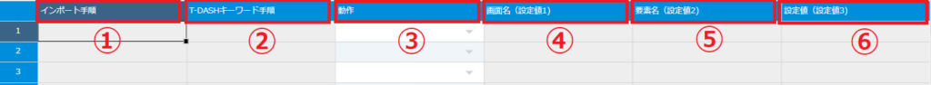 | ➁T-DASHキーワード手順 | テストスクリプト。文章で③から⑥を入力すると自動で作成される |