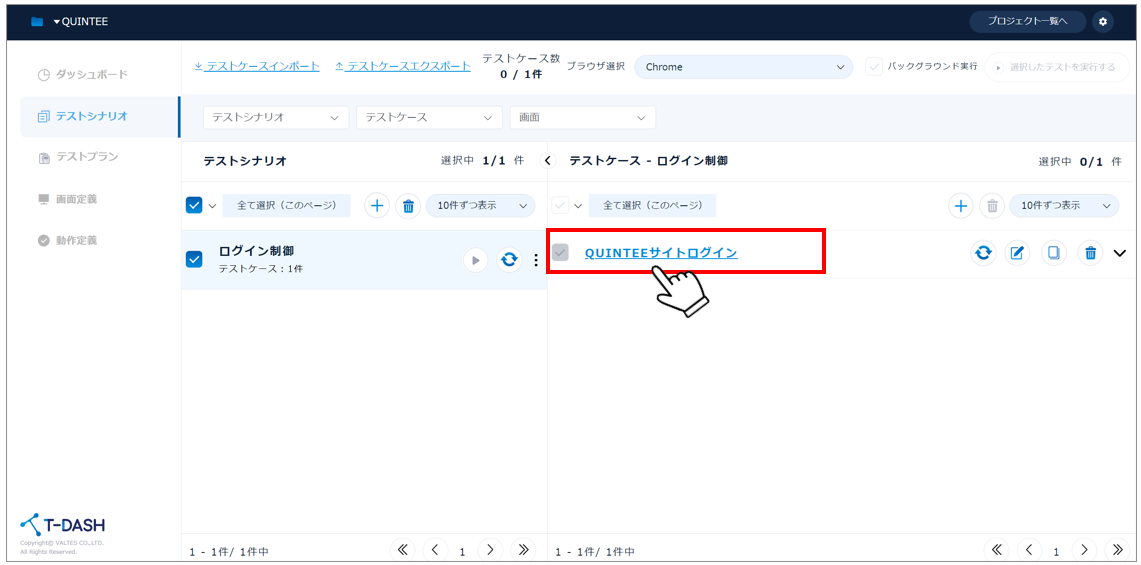(1) 事前に画面定義を行った状態で、テストケースを作成