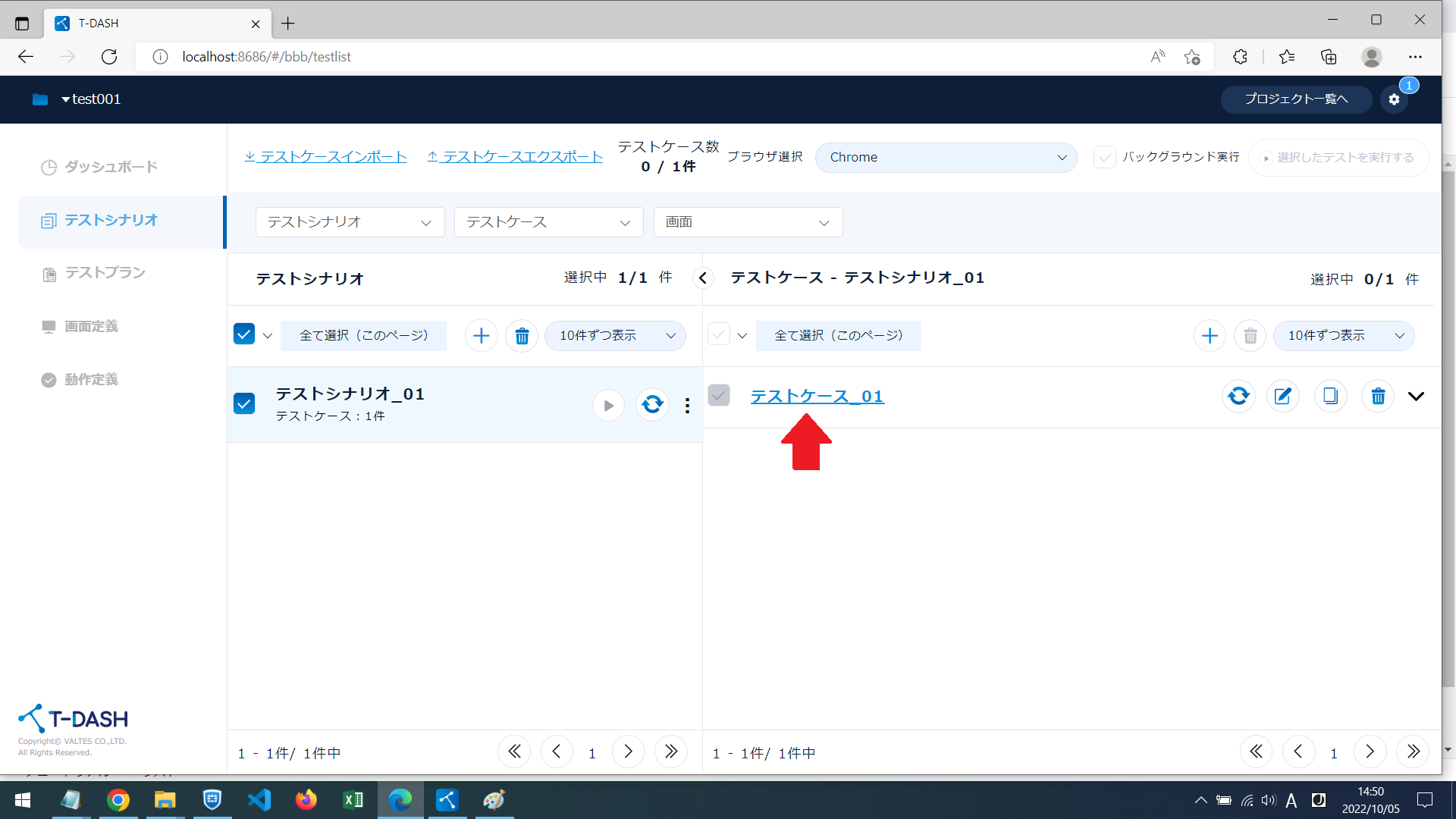 T-DASHでは、テストケースを作成するときに、