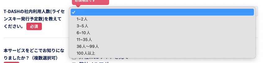 下記、標準動作を使用してプルダウンリスト(セレクトボックス)のT-DASHでの動作をできるようにする。