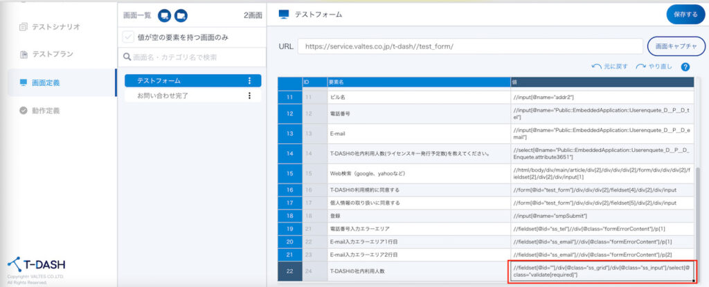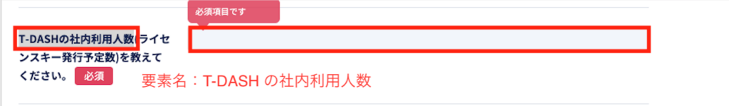 3. 画面定義画面でT-DASHの社内利用人数を要素をキャプチャーツールで取得します。