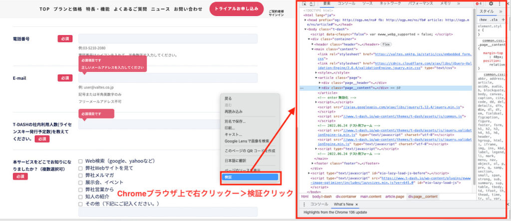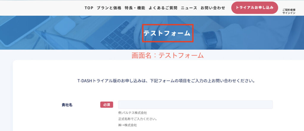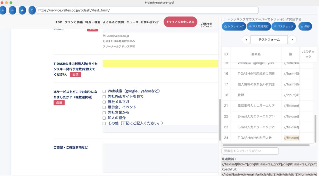 対象テストサイト:/t-dash/test_form/