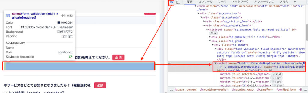 2.2 要素をトラッキングして、HTML上のタグ情報を確認します。