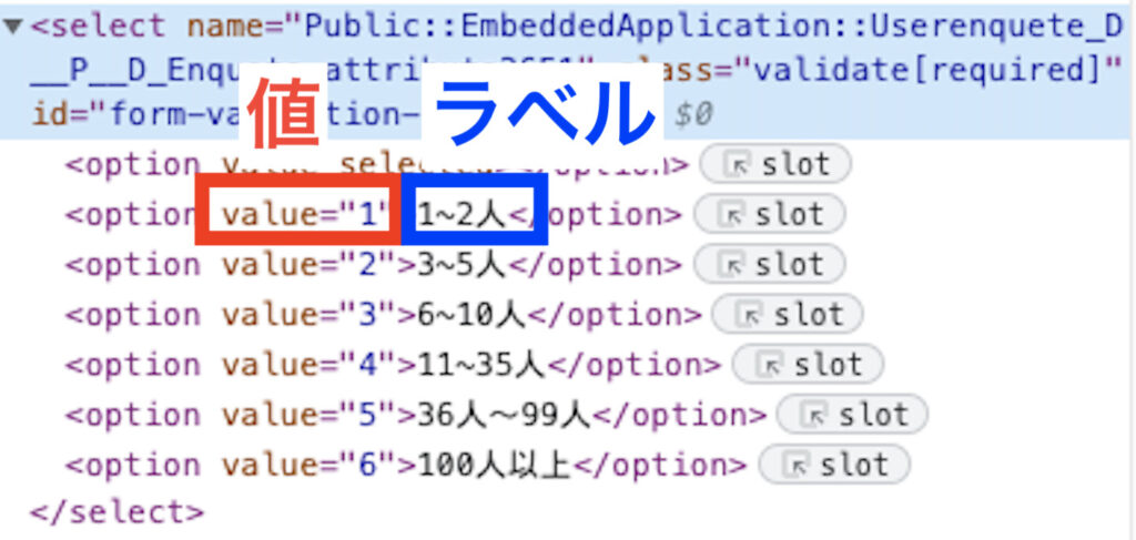 Selectタグで作られていない場合はラベルを指定してリストを選択にする、値を指定してリストを選択にするは使用できません。