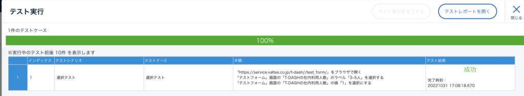4. テスト実行してPASSになれば正常に動作ができています。