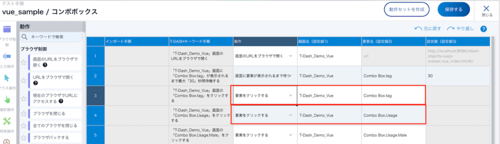 - テストケースで使用した対象画面の画面要素を登録する