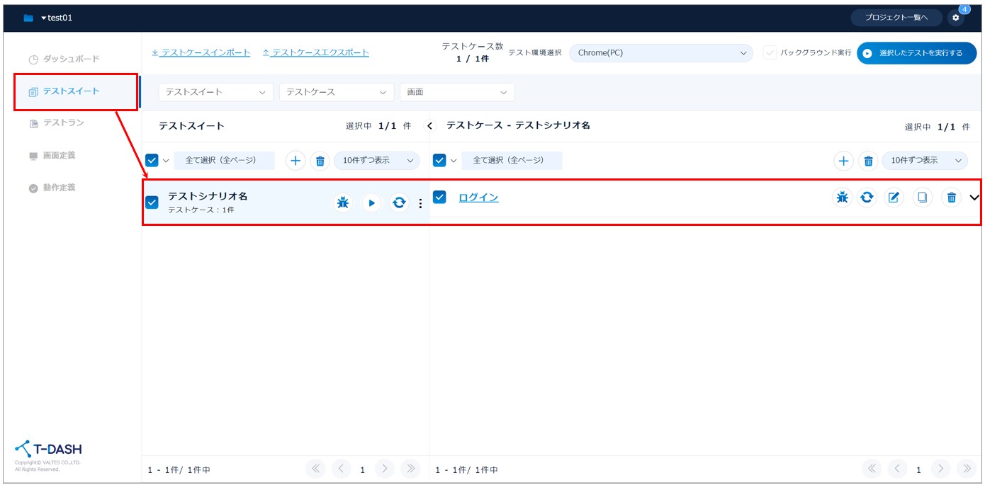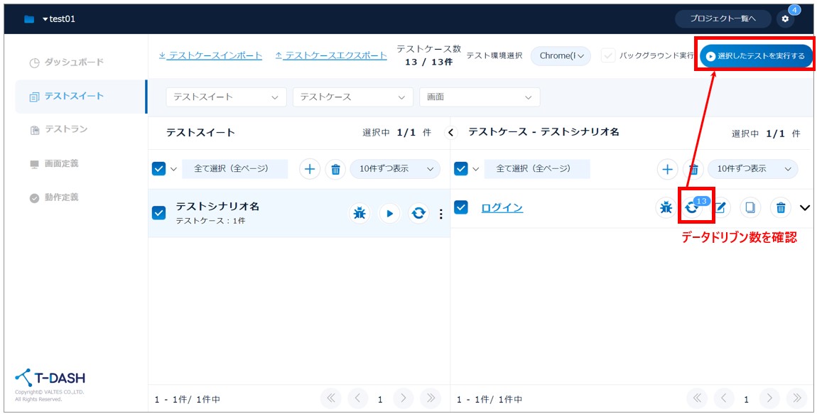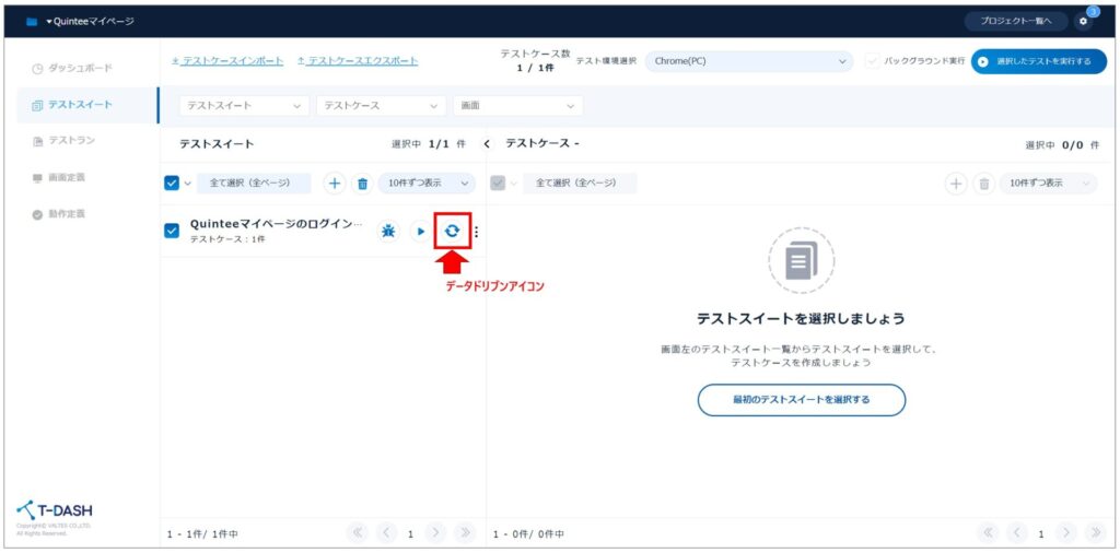 - テストスイートの「データドリブン」アイコンをクリック