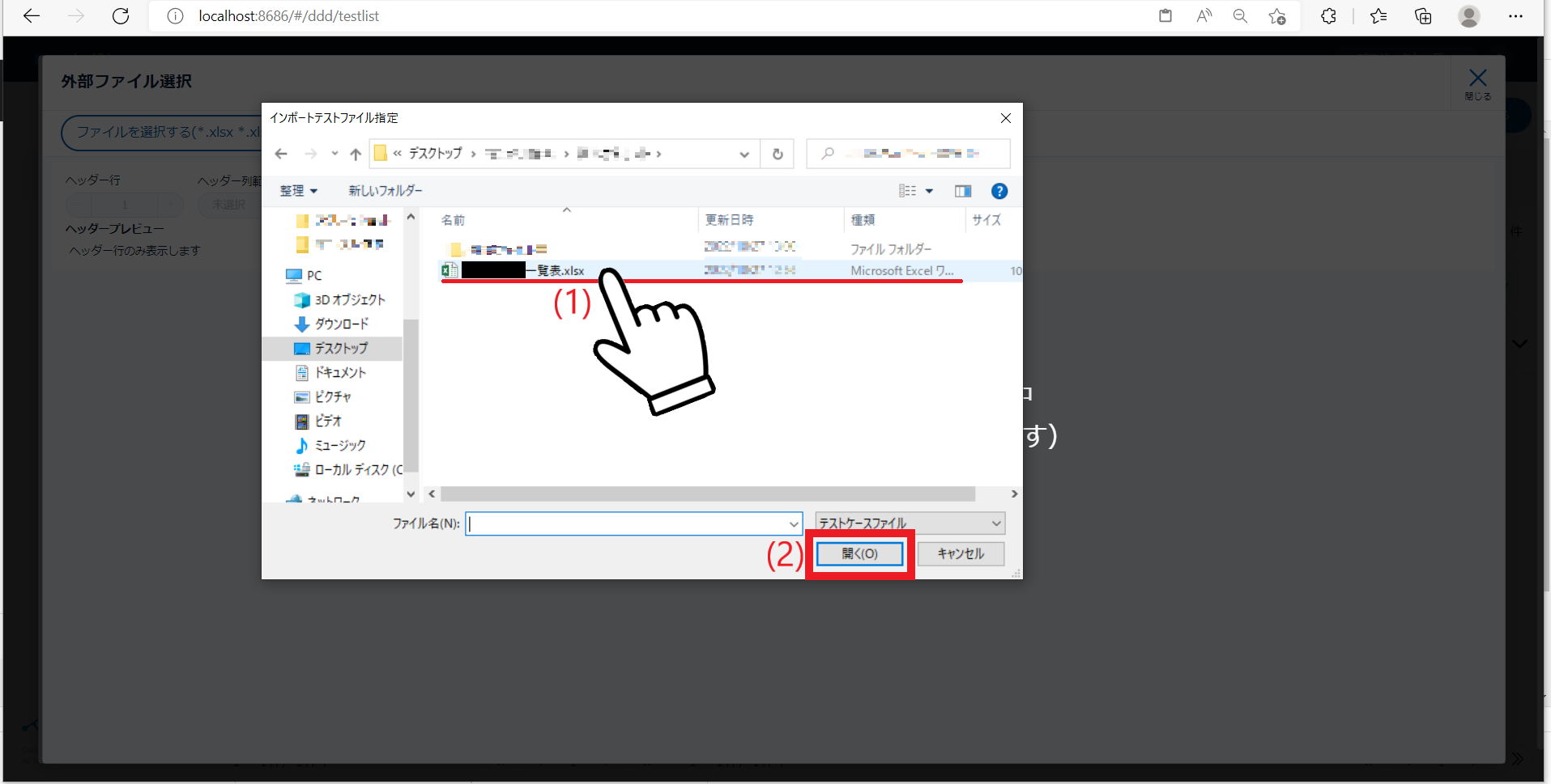 - 該当する外部ファイルを選択する