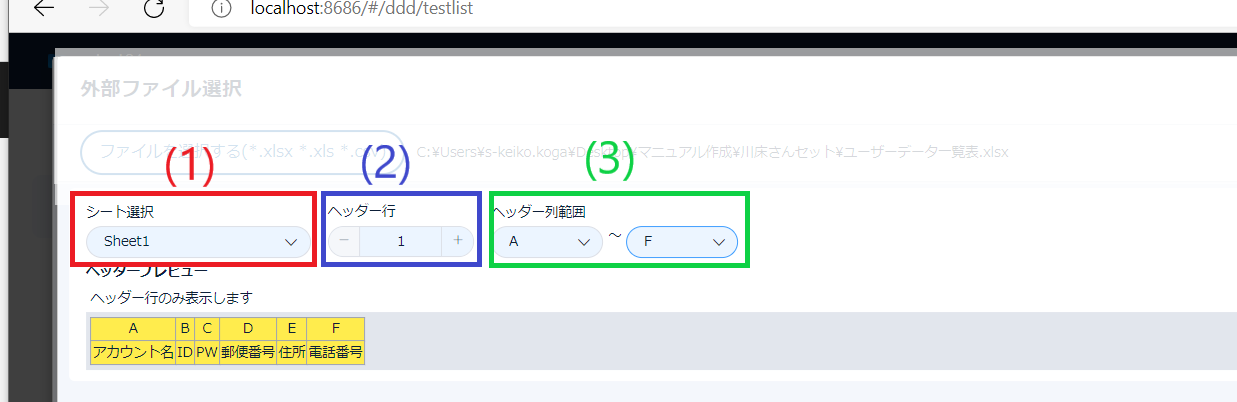 (3)ヘッダー列範囲を選択