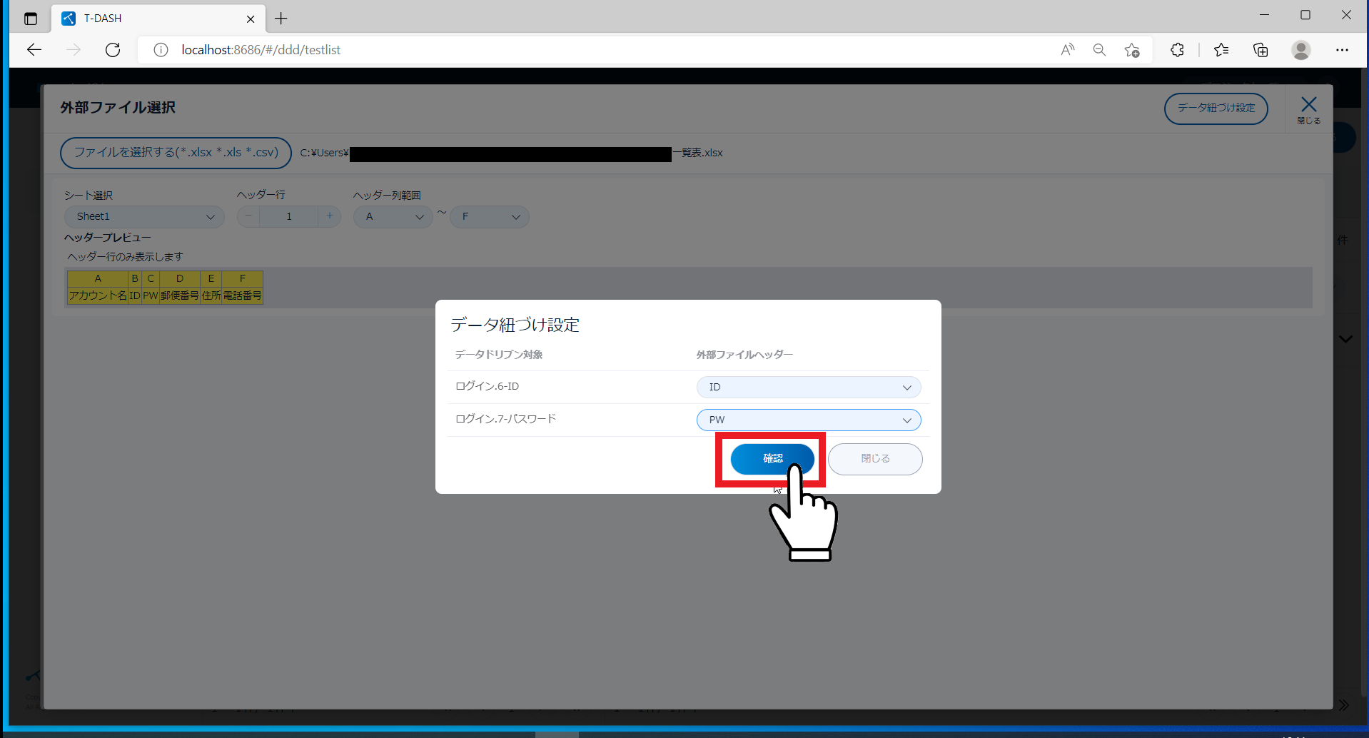 - 「確認」をクリック