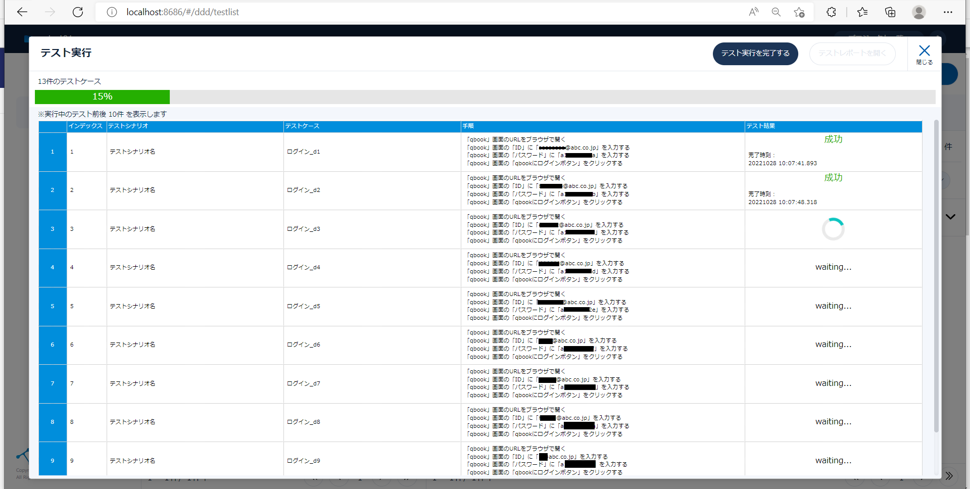 - テストが実行される