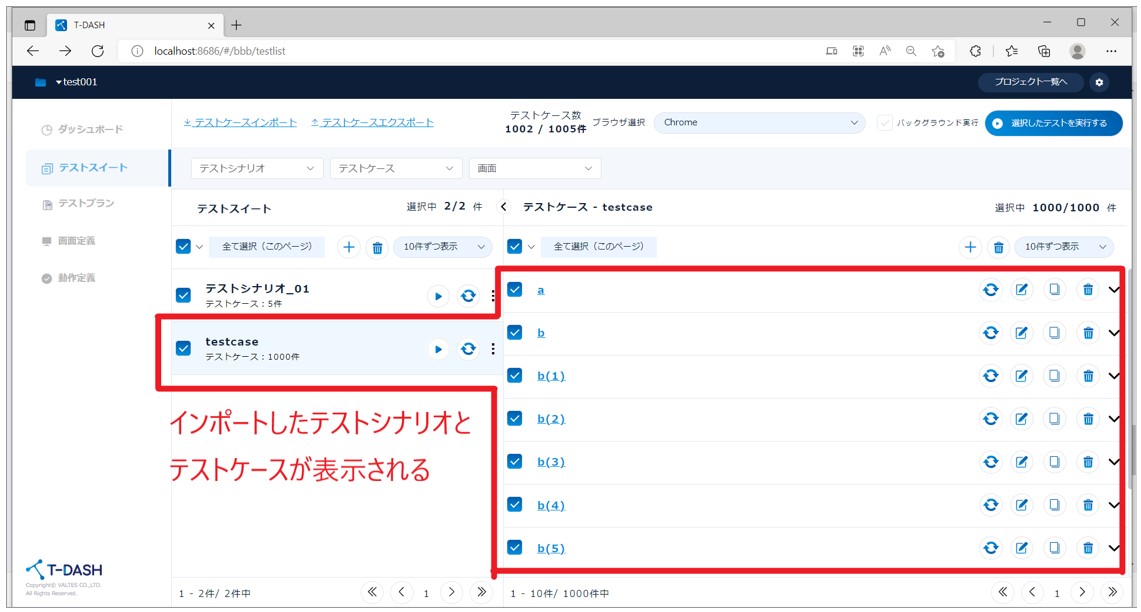 - ダッシュボードに戻り、テストケースがインポートされていることを